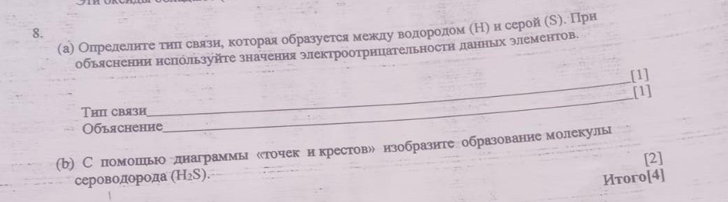 срочно ! Определите тип связи, которая образуется между водородом (Н) и серой (S). При объяснении используйте значения электроотрицательности данных элементов. Тип связи Объяснения