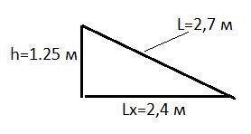 L ? Ekин=Eпот; mV²/2=mgh; h=V²/(2*g)=5²/(2*10)=1,25 м; ↓Lx=a*t=0,4*6=2,4 м; L=√(√h²+Lx²)=√(√1,25²+2,4²)=2,7 м