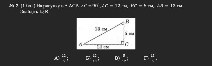 тангус - відношення протилежного катета до прилеглого, тобто tgB = AC:BC