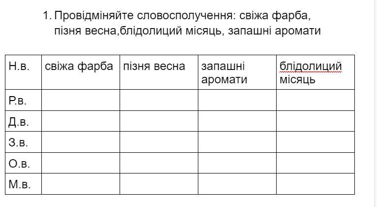 Відповідь: свіжої фарби, свіжій фарбі, свіжу фарбу, свіжою фарбою, на свіжій фарбі.