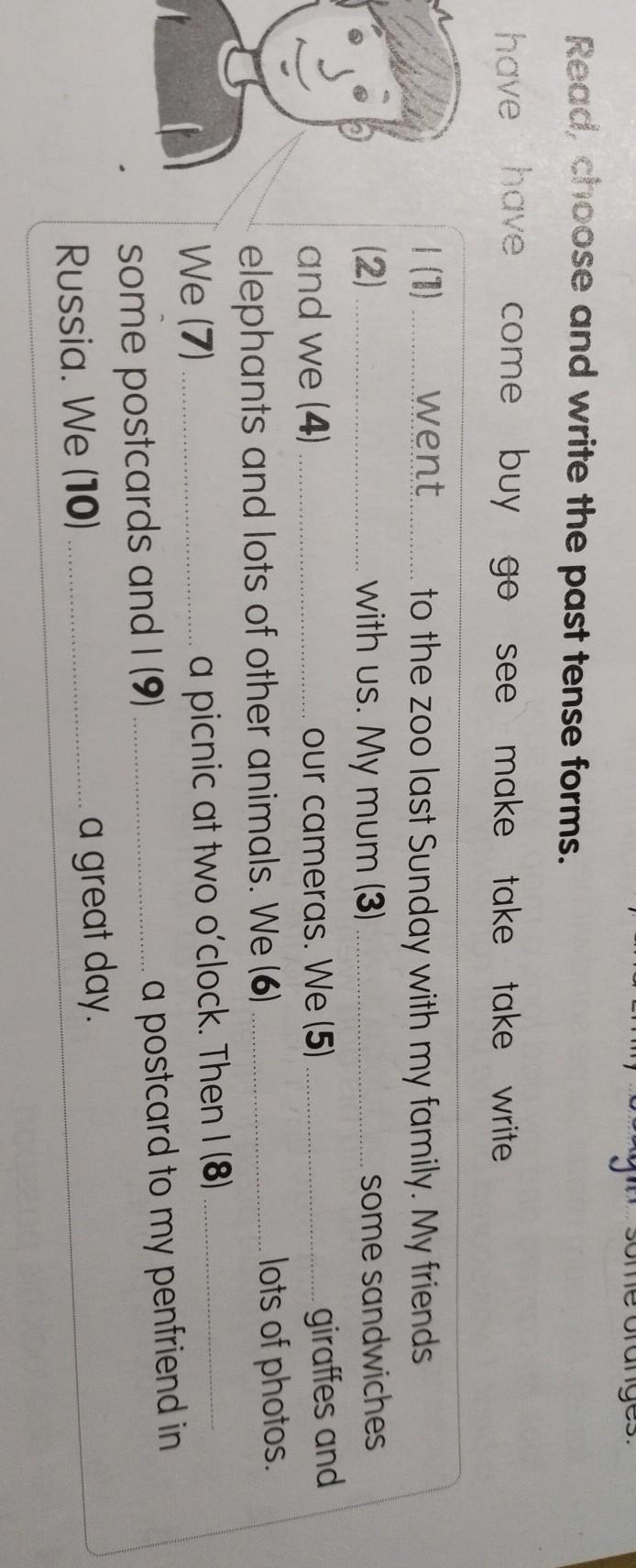 1.i had went 2. had came 3.bought, 4. took, 5.went seeing, 6.took, 7. had, 8,9. wrote, 10.had