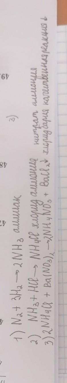 Составьте уравнения реакций по схеме: N2 → NH3 → NH4C1 → NH4NO3 → N2О → N2. Составьте 3-е уравнение реакции в молекулярно-ионной форме, в 1-м уравнении подберите коэффициенты. электронным балансом.
