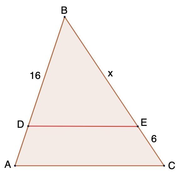 В треугольнике АВС DE || AC найдите сторону AB, если BD=16, AB-BC=6, CЕ=6.