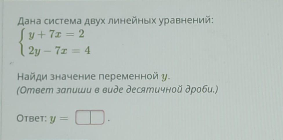Найди значение переменной у. (Ответ запиши в виде десятичной дроби.)