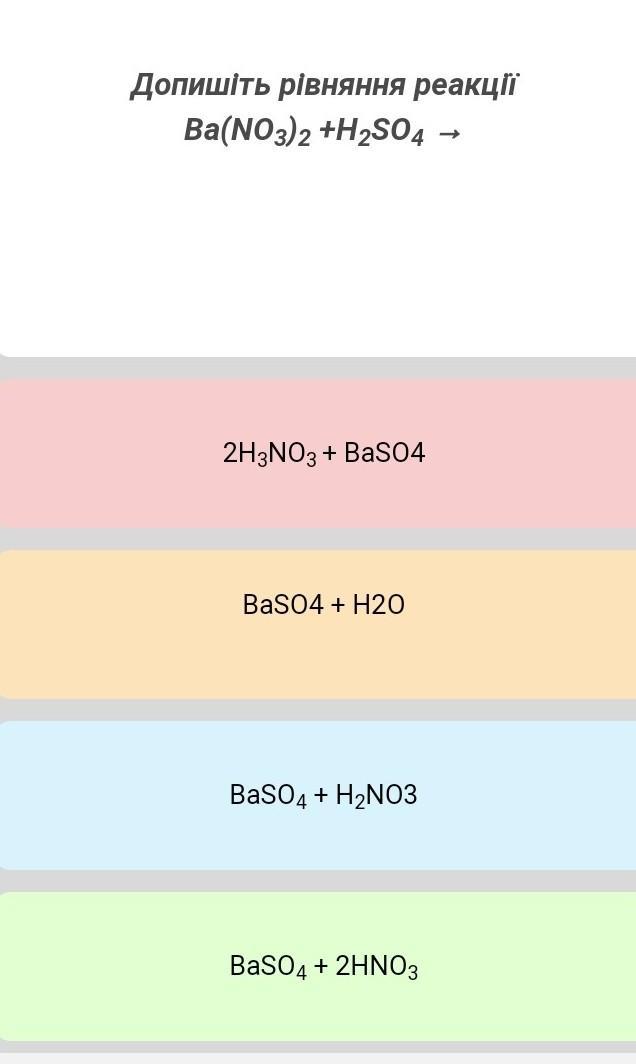 Ответ:Ва(NO3)2 + H2SO4 → BaSO4 + 2 HNO3