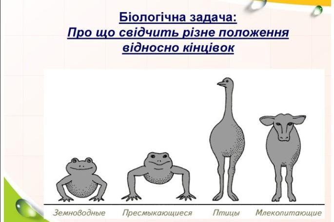 Біологічна задача: Про що свідчить різне положення відносно кінцівок