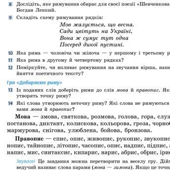 12 Римування може впливати на звучання вірша та сприйняття поетичного тексту. Наприклад, жіноча рима може створювати відчуття легкості та плинності, а чоловіча - більш гострий та напружений ефект. Також римування може допомагати зберегти ритм та мелодичність вірша, а також підсилювати емоційну напругу.