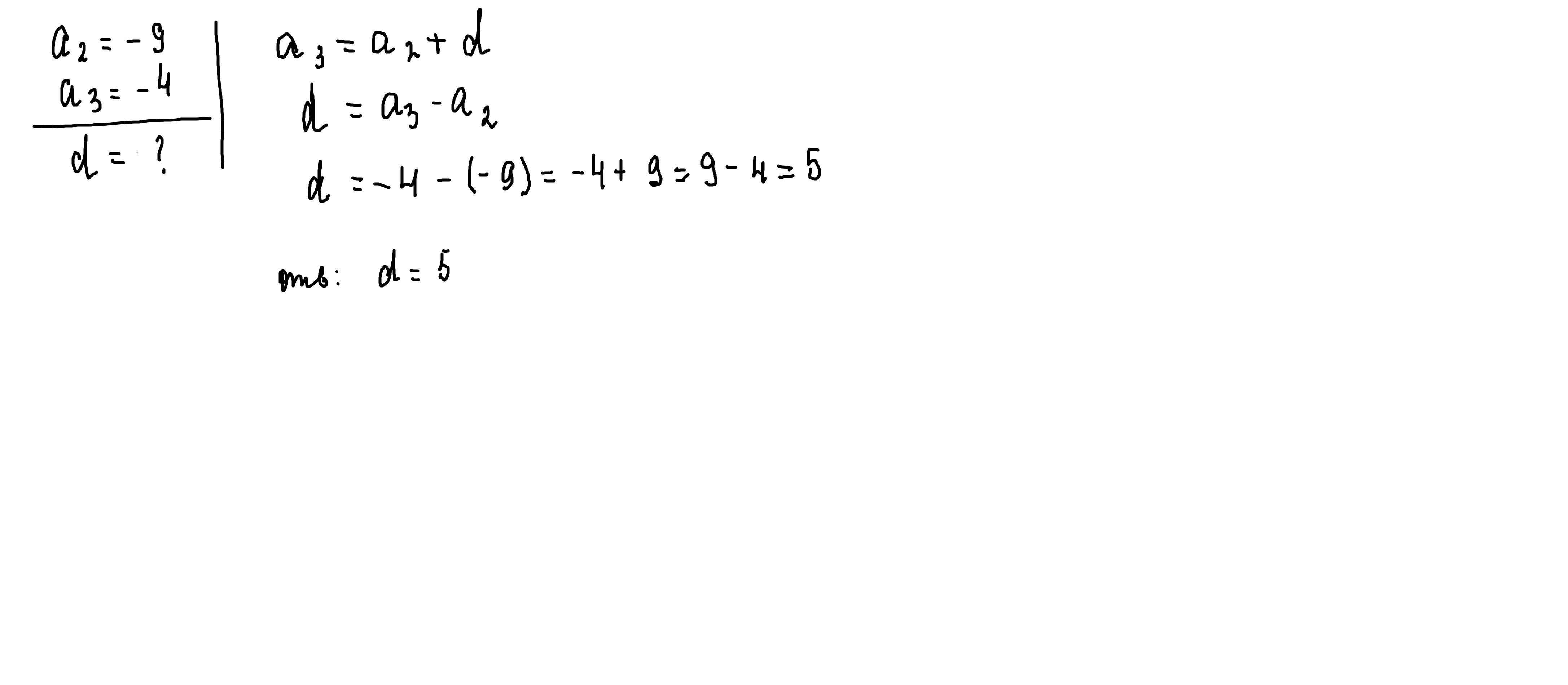 d = a₃ - a₂ = -4 - (-9) = -4 + 9 = 5