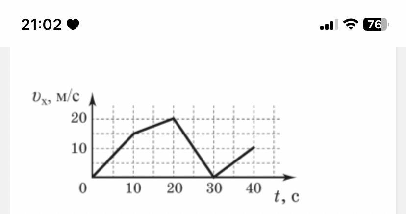автомобіля, що рухається прямолінійно, від часу t. В якому інтервалі часу модуль прискорення є мінімальним? (1 бал)