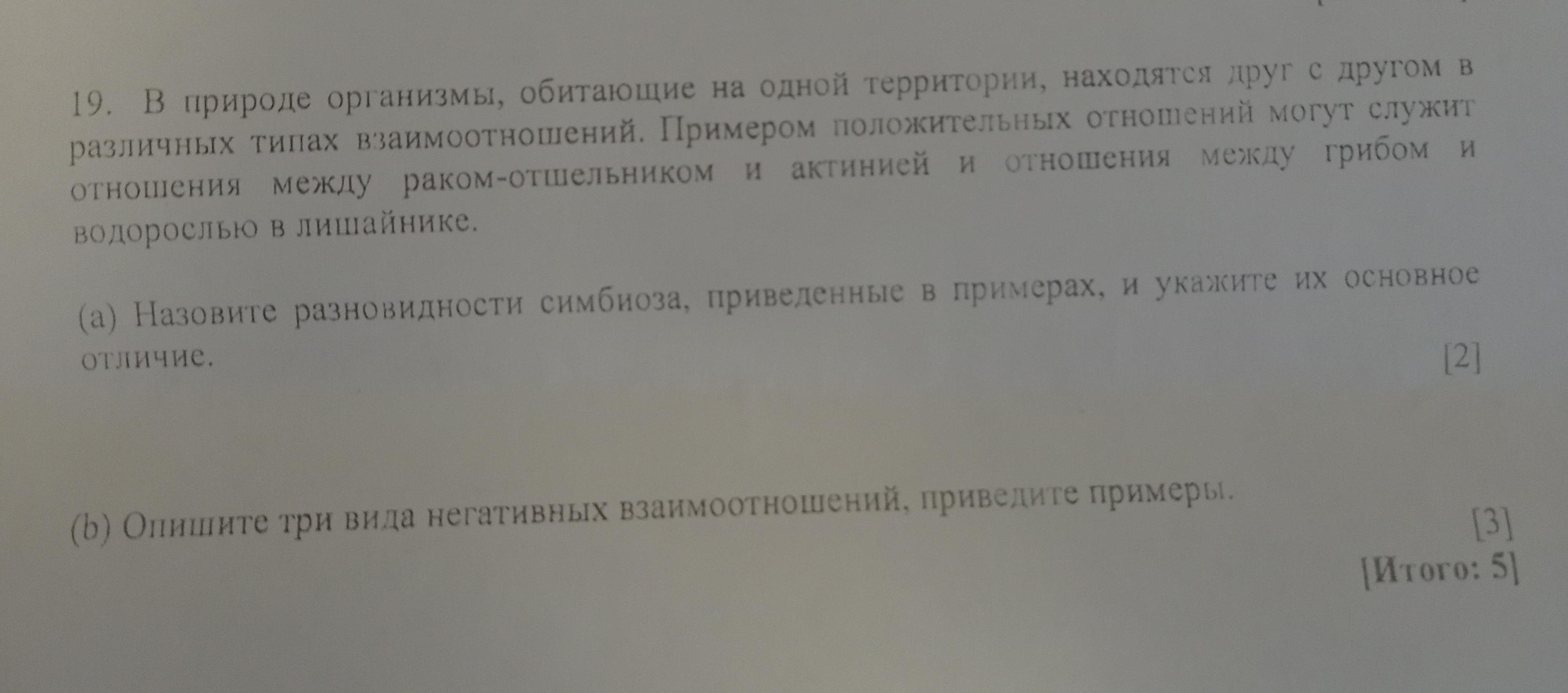 (а) Симбиоз бывает трёх видов: мутуализм, паразитизм и комменсализм. Мутуализм – это такая форма взаимоотношений, когда оба вида приносят пользу друг другу. Самый яркий пример такого сотрудничества – человек и бактерии. Человек даёт бактериям пищу и кров, а бактерии помогают пищеварению и стоят на страже нашего здоровья.