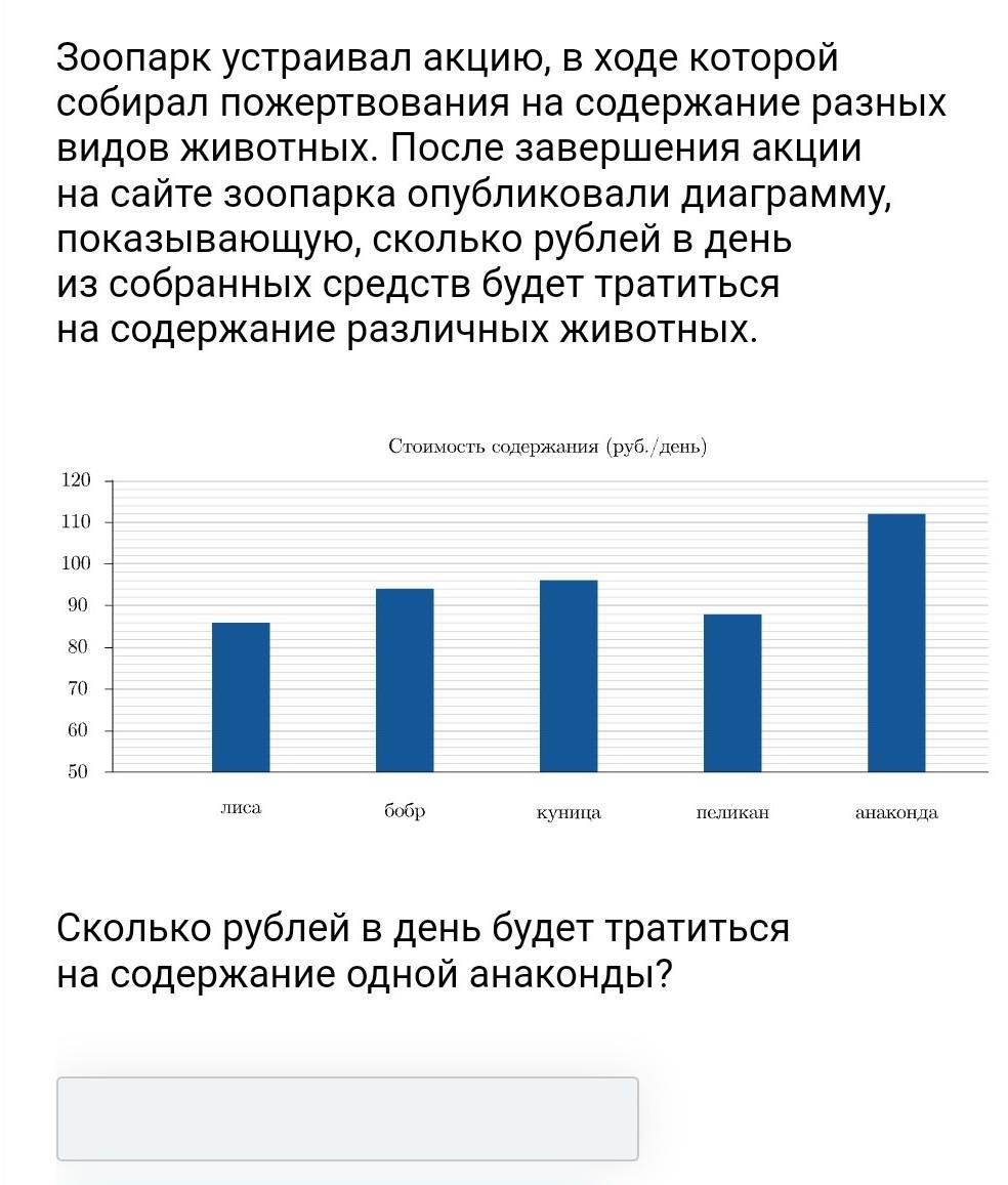На содержание одной анаконды будет тратиться 112 рублей в день