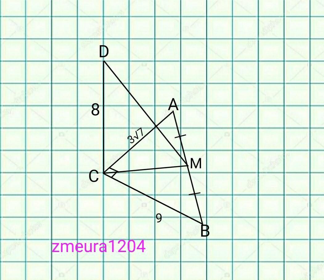 У трикутнику АВС відомо, що кут С дорівнює 90°, АС=3√7 ВС=9, точка М - середина ВА. Пряма DC перпендикулярна до площини АВС, DC=8. Знайдіть DM.