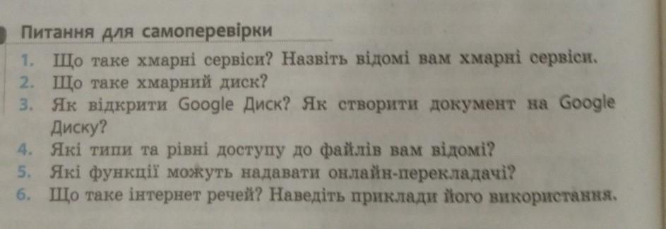 1. Хмарні сервіси - це модель онлайн сервісів які виконують сервіс на розподілених серверах компанії. Хмарне сховище даних, хостинг, VPN, перекладачі, чат боти і.т.д