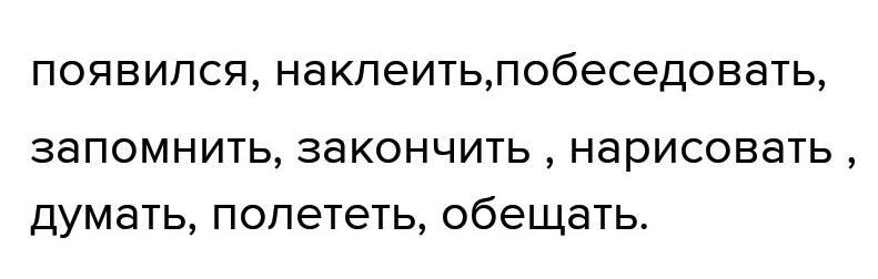 Появился, наклеить, побеседовать, запомнить, закончить, нарисовать, надумать, подлететь, пообещать.