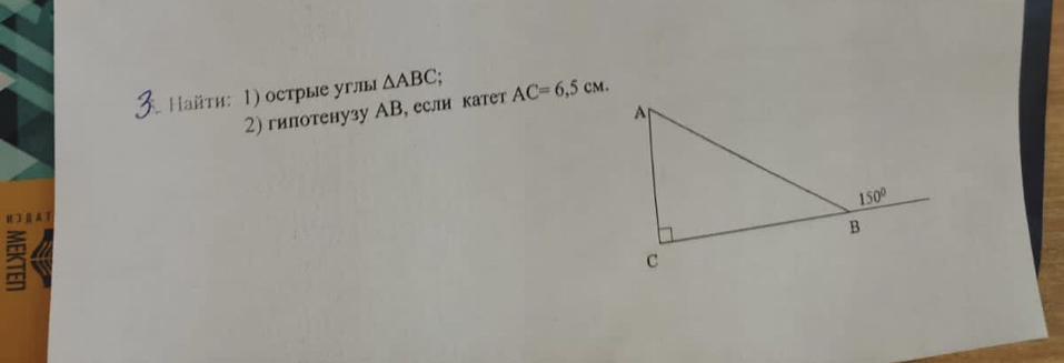 Катет лежащий против угла 30° равен половине гипотенузы: