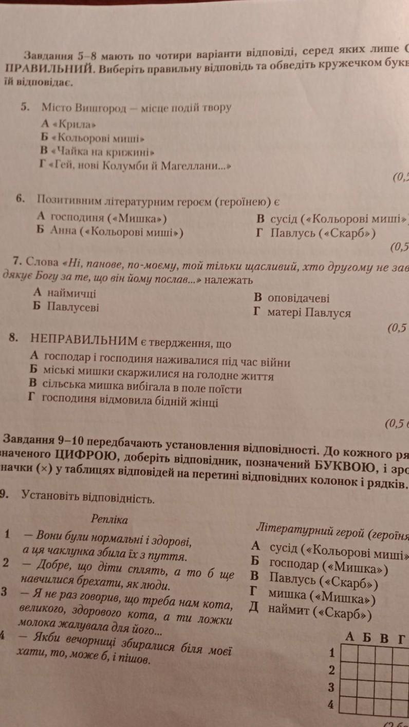 9) 1)а(сусід) 2)г(миша) 3)б(господар) 4)в(павлусь)