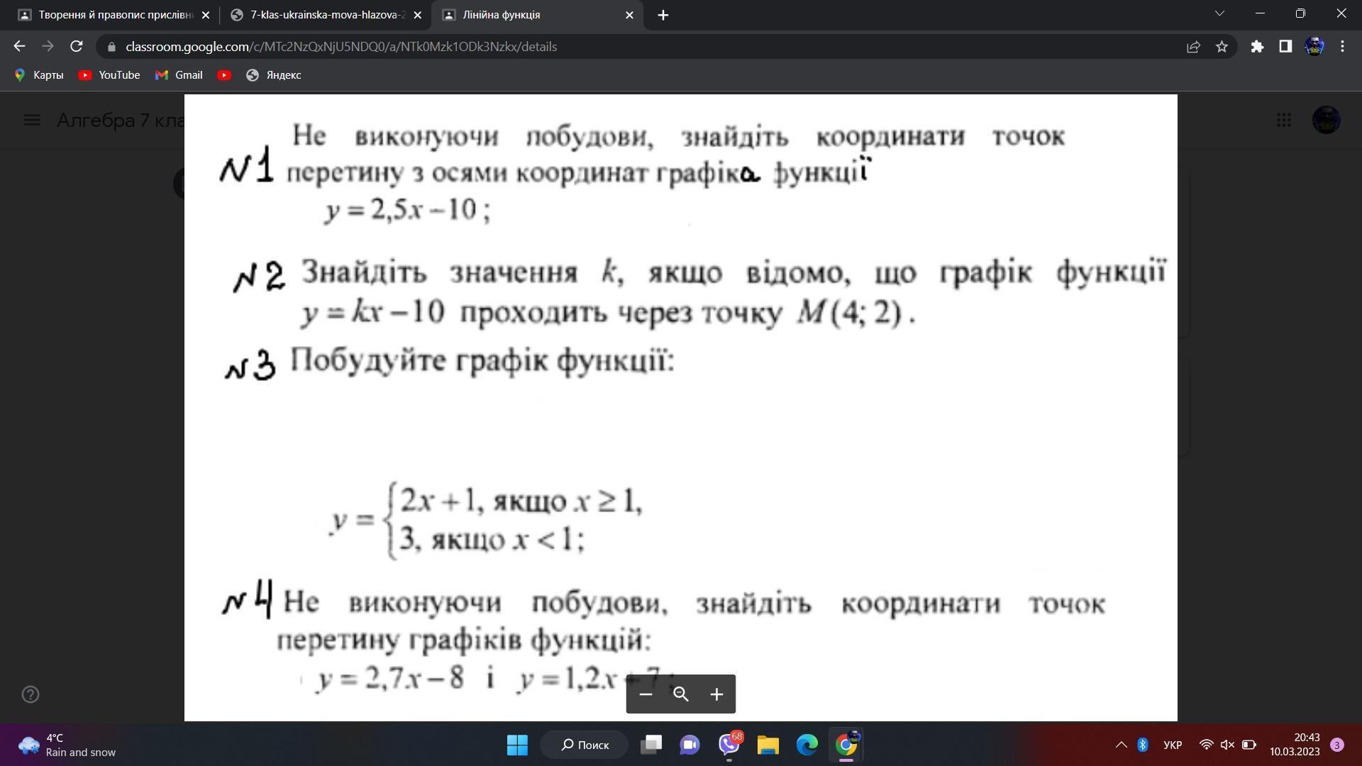 координаты точки пересечения (10; 19)
