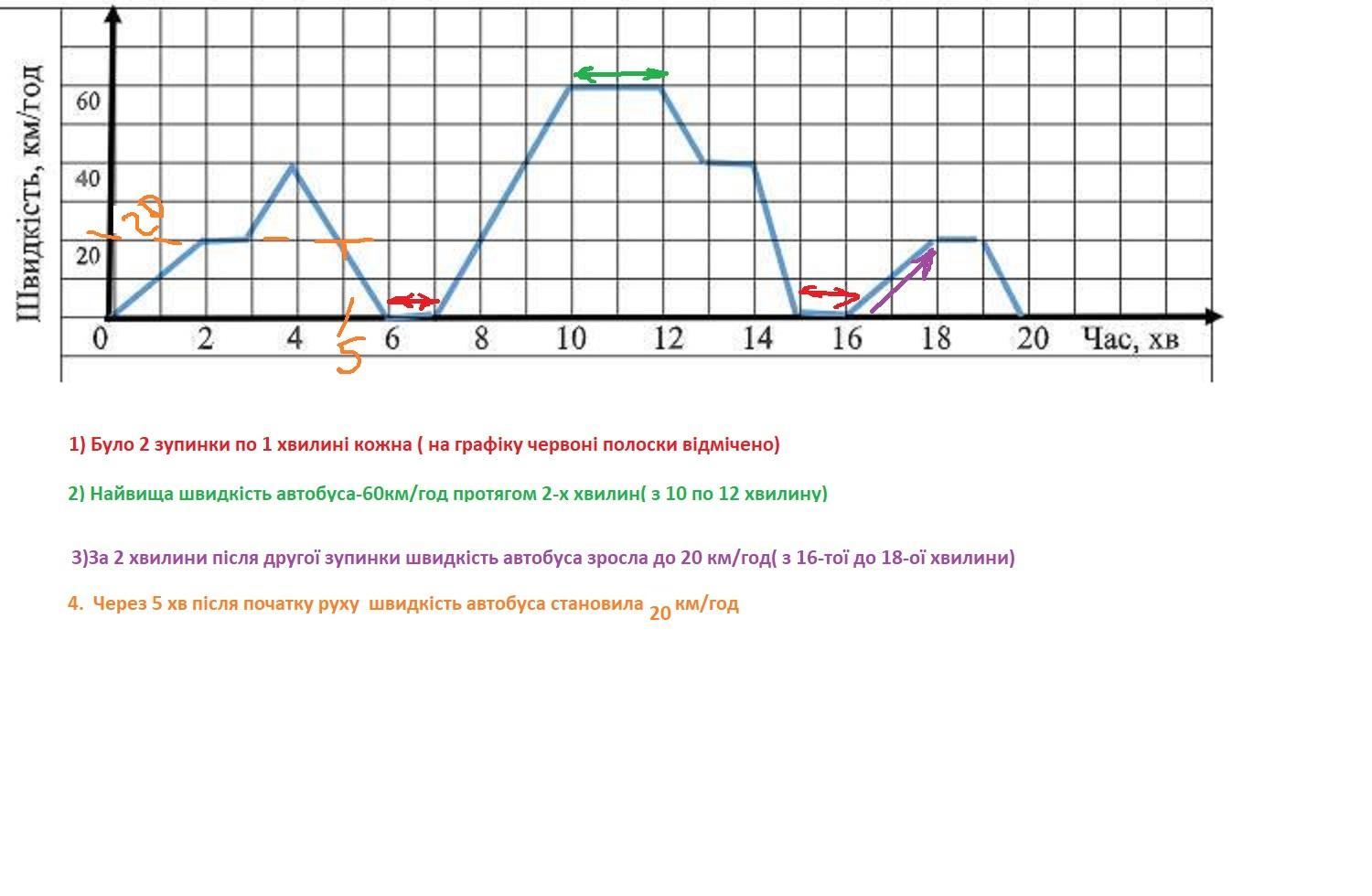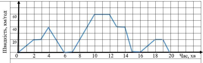 3. За скільки хвилин після другої зупинки швидкість автобуса зросла до 20 км/год.