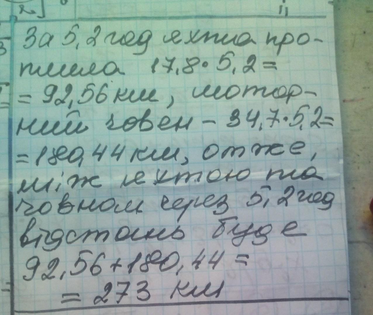 1) 17.8•5.2=92,56(км)-пройшла яхта за 5,2го2д.