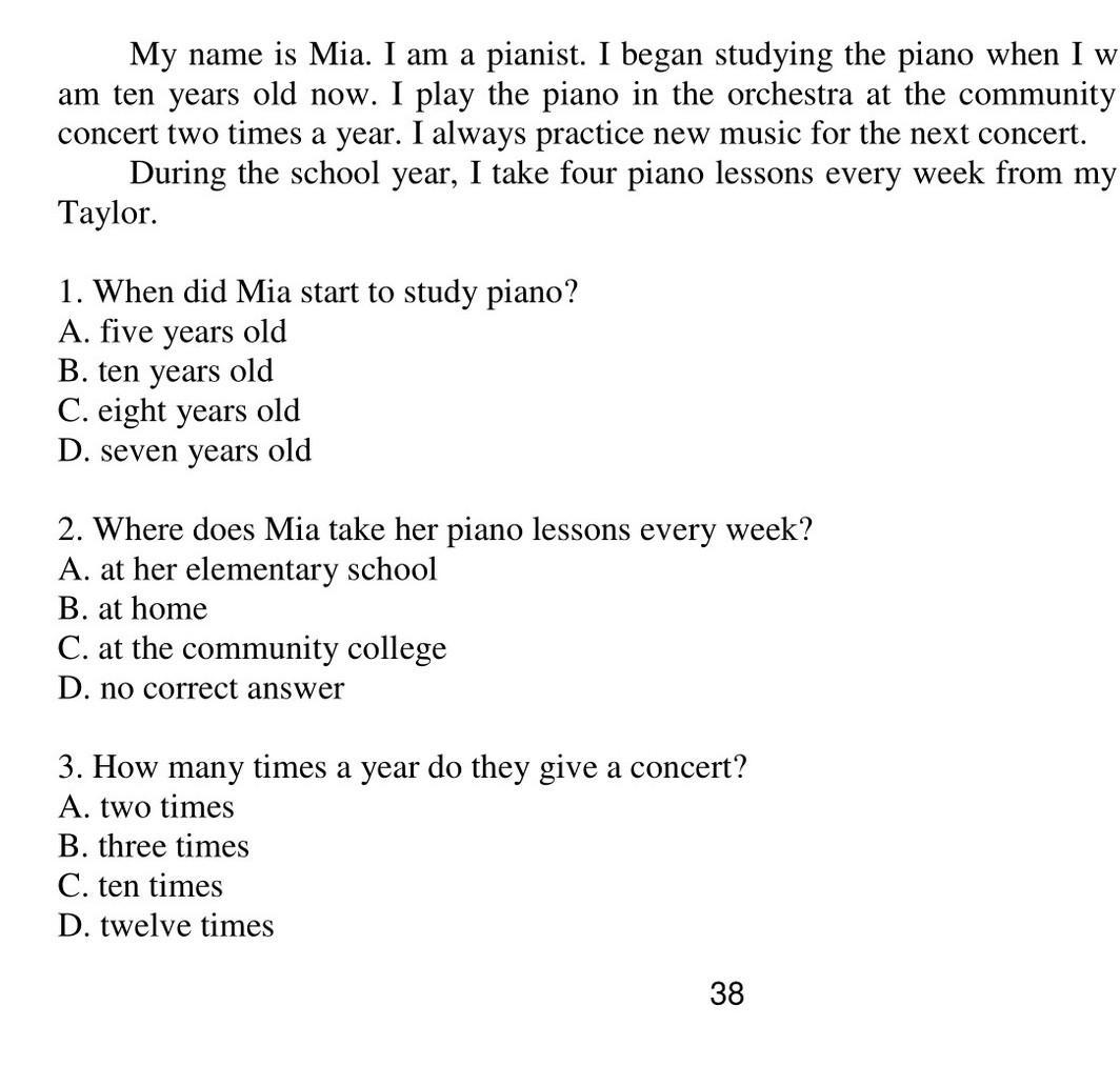 1 Первая строчка не полная: I began studying the piano when I was_?__
