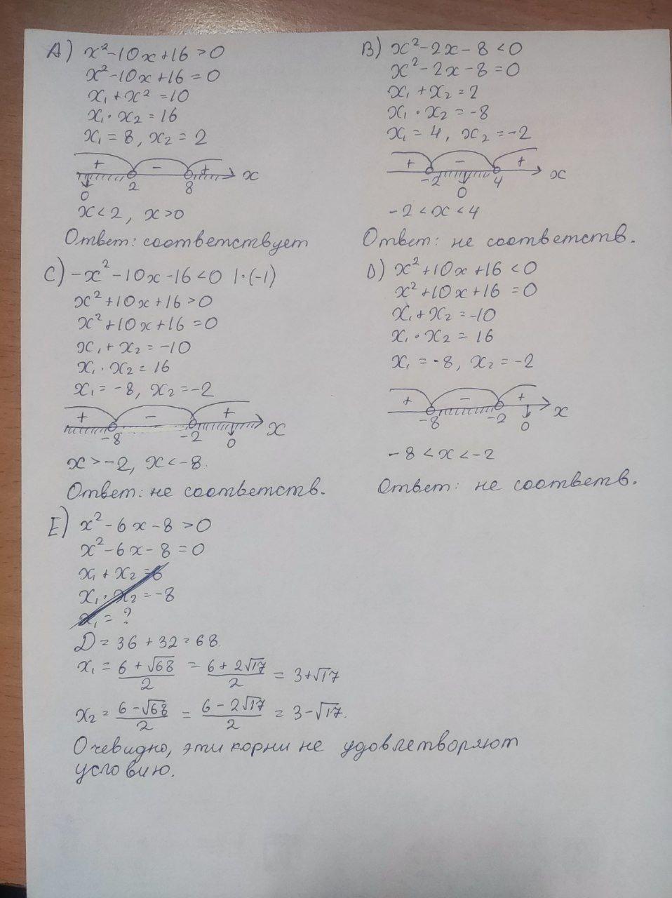 В неравенстве Е попытался решить теоремой Виета, но корни не очевидны, поэтому использовал дискриминант.