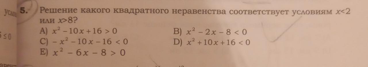 Решение какого квадратного неравенства соответствует условиям х<2 или х>8?