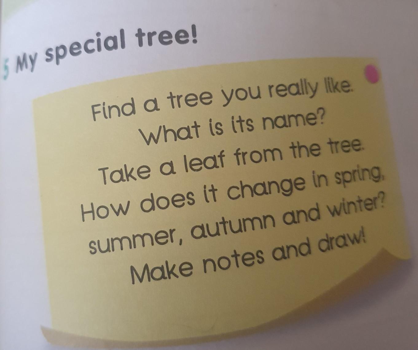 5 My special tree! Find a tree you really like. What is its name? Take a leaf from the tree. How does it change in spring, summer, autumn and winter? Make notes and draw! пж помогите срочно!!! дам 15