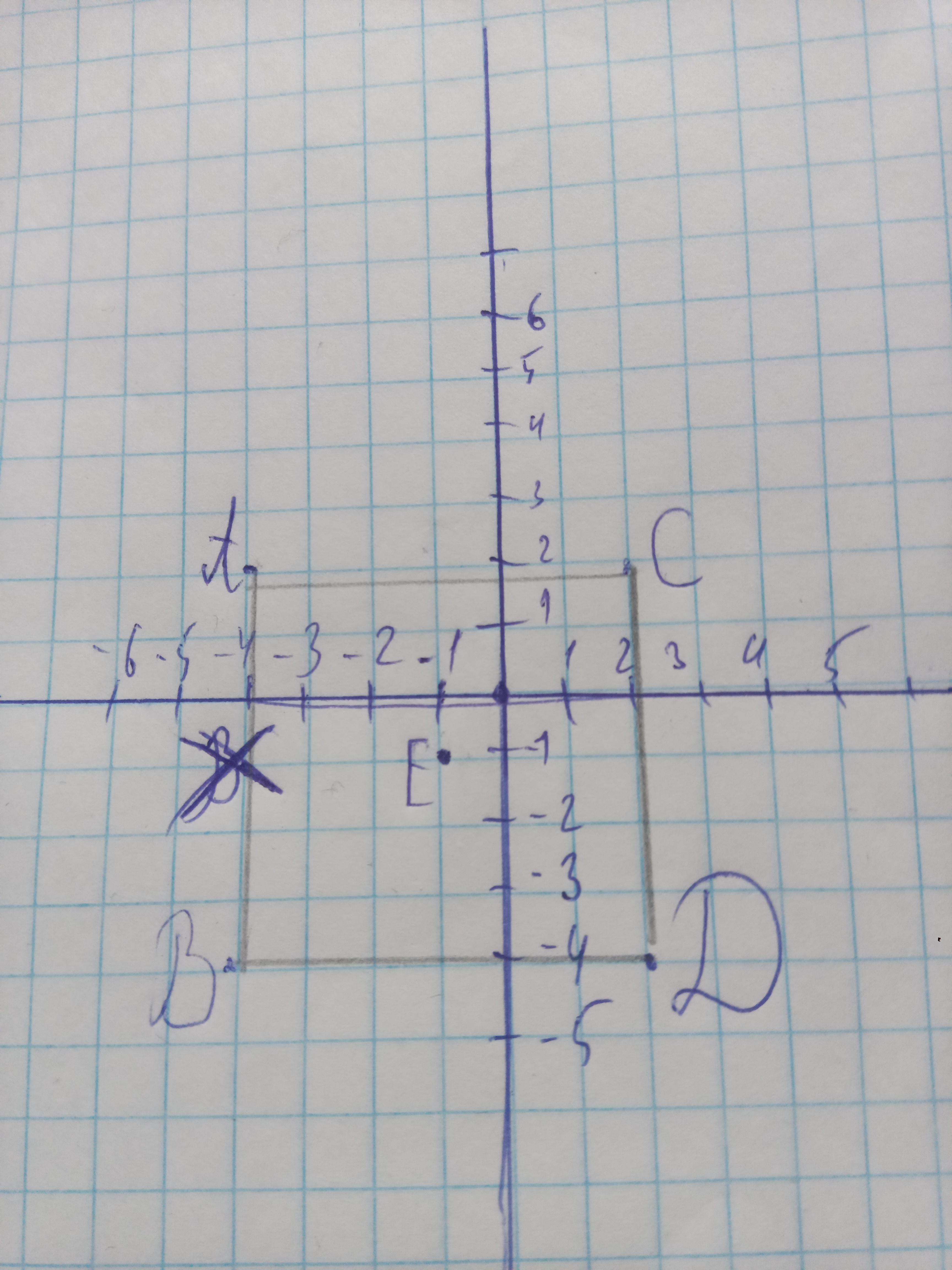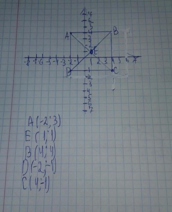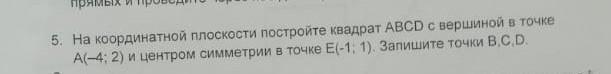 5. На координатной плоскости постройте квадрат АBCD с вершиной в точке A(-4; 2) и центром симметрии в точке Е(-1: 1). Запишите точки В. C.D.