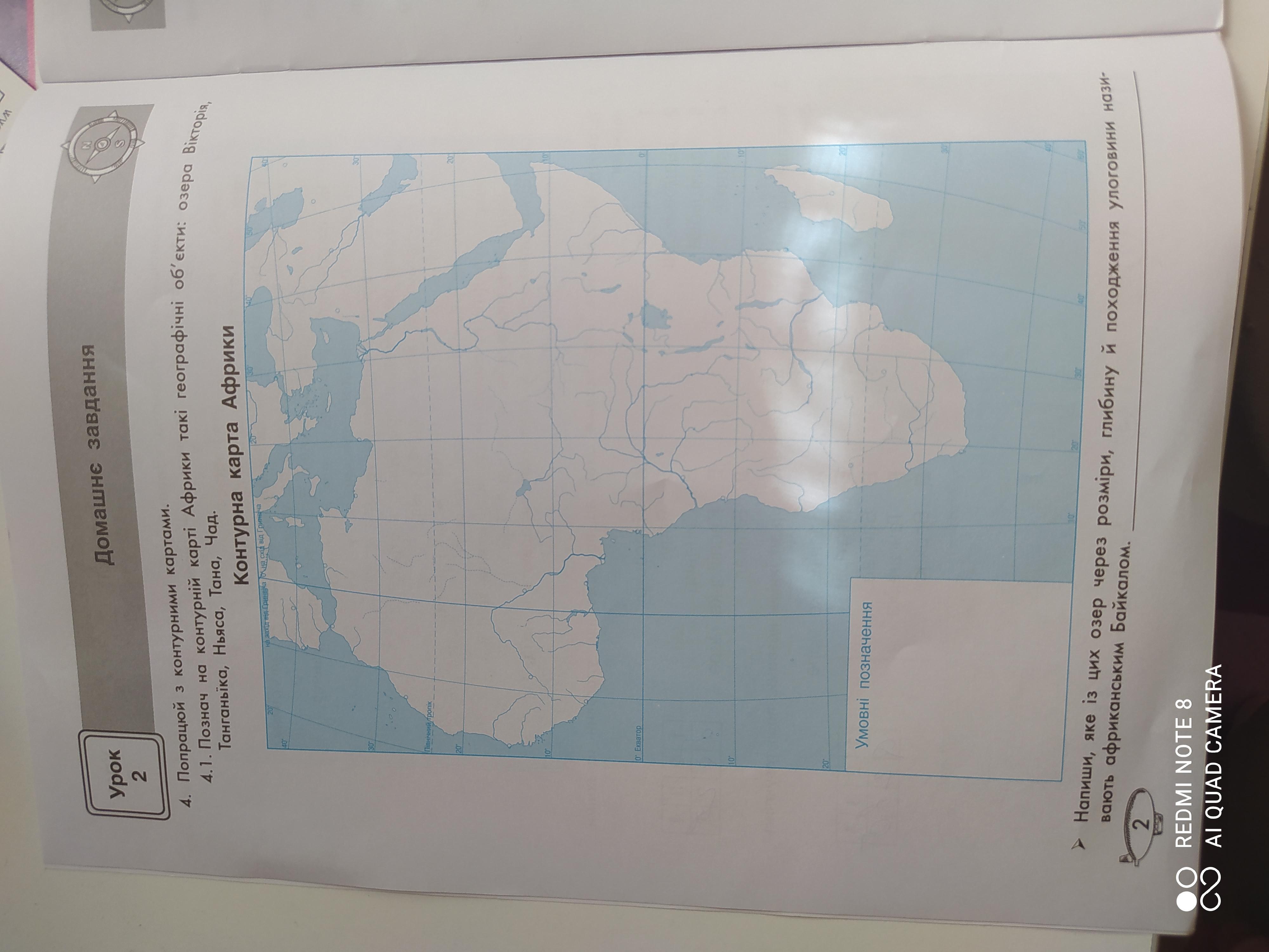 Познач на контурній карті Африки такі географічні об'єкти озера Вікторія танганьїка ньяса тана чад