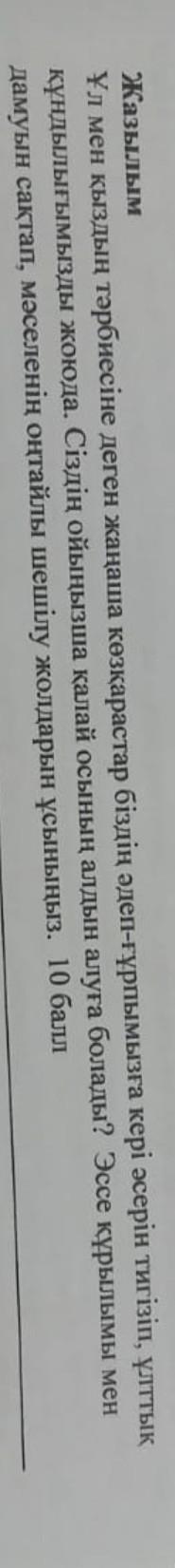 кундылыгымызды жоюда. Сіздін ойынызша калай осынын алдын алуга болады? Эссе курылымы мен