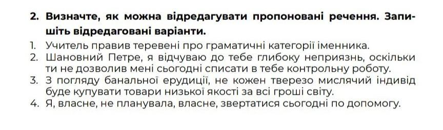 Визначте, як можна відредагувати пропоновані речення. Запишіть відредаговані варіанти.