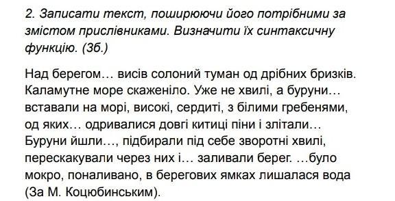 Помогите сделать задание дам 100 баллов!!!! Нужно сдать через час!!! 2. Записати текст, поширюючи його потрібними за
