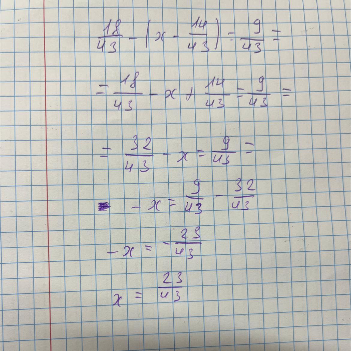 Відповідь: x=23/43 це все