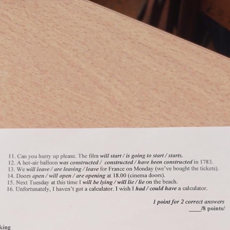 11. Can you hurry up please. The film will start / is going to start / starts.
