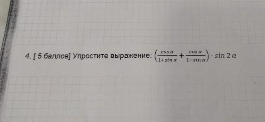 4. Помогите пожалуйста завтра Соч Упростите выражение: cos a 1+sin a + cos a 1-sina, sin 2 a