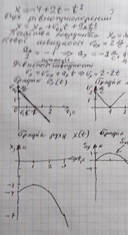 Прямолінійний рух описується такою формулою: х=-4+2t-tквадрат. Опишіть рух, побудуйте для нього графік!!!! Графік обов'язково! Будь ласка!