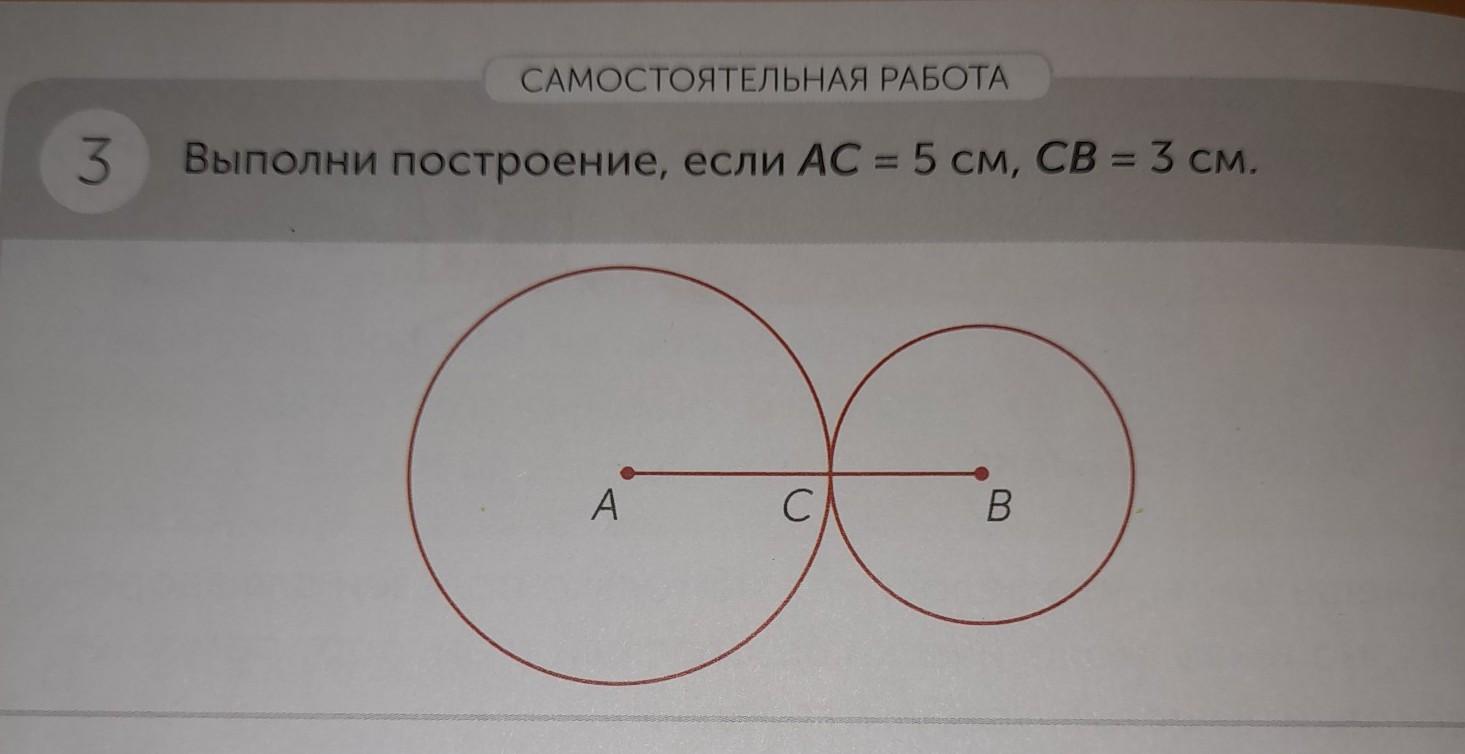 3.Выполни построение, если АС=5см СВ=3см