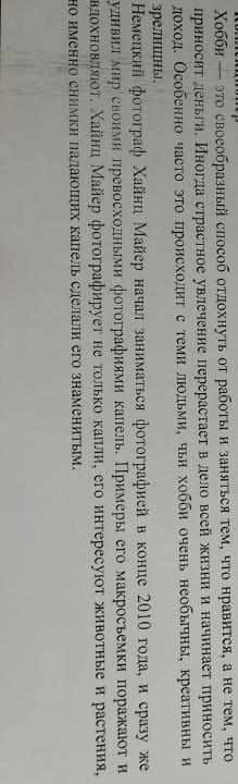 Ответ: 1. хобби не своеобразный способ отдохнуть от работы и других дел.