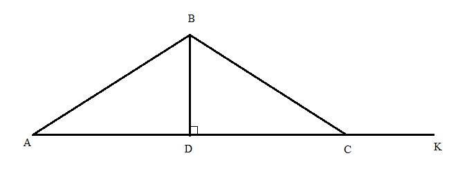 Внешний угол ∠BCK является смежным к ∠ВСА при основании треугольника.