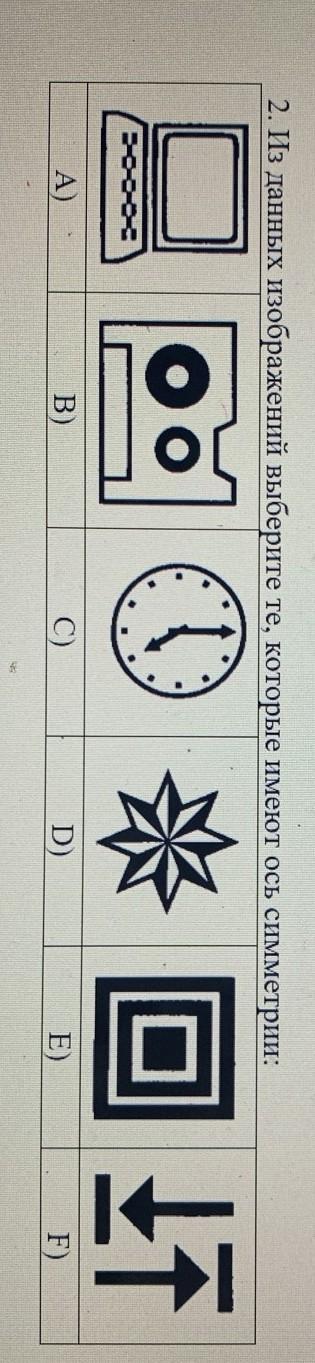2. Из данных изображений выберите те, которые имеют ось симметрии: А) oo DL т B) E) C) D) F)