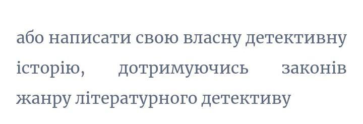 Потрібно написати свою власну детективну історію, дотримуючись законів жанру літературного детективу.