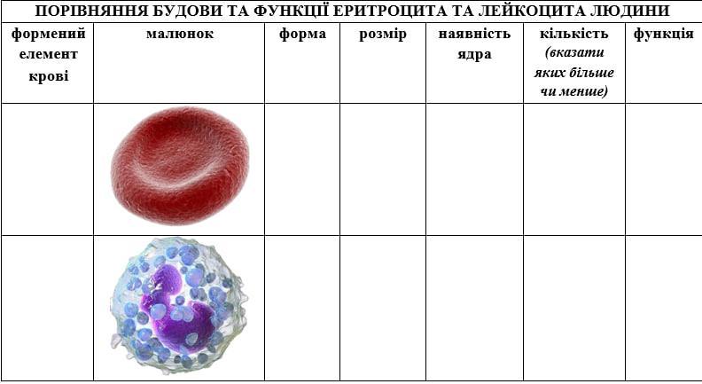 а где лецкоциты пишешь функцию : они убивают ненужные вещества