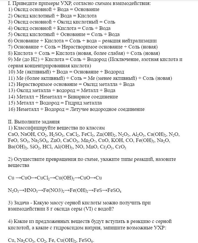 1) Оксиды: CaO, CO2, N2O5, Al2O3, N2O, FeO, SO3, ZnO, Mn2O7, CuO, CO, Na2O, SiO2, NO, MnO, Cr2O7, CrO3