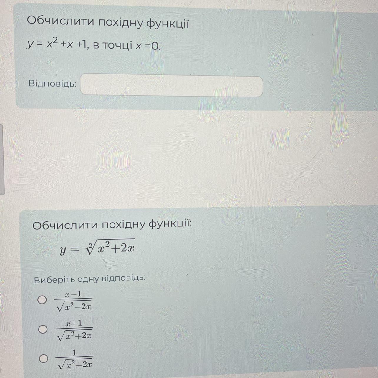 Щоб обчислити похідну функції у= Х2+Х +1, в точці X =0, необхідно взяти похідну цієї функції за змінною X і підставити X = 0.