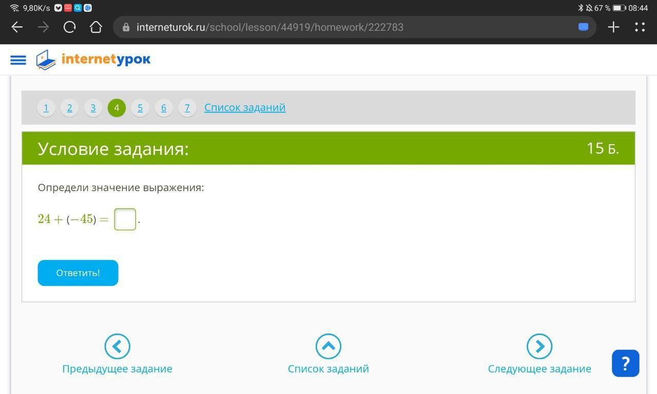24+(-45)=24-45= -21