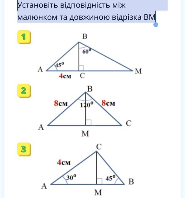 ВМ- висота, медіана і бісектриса рівнобедреного трикутника.
