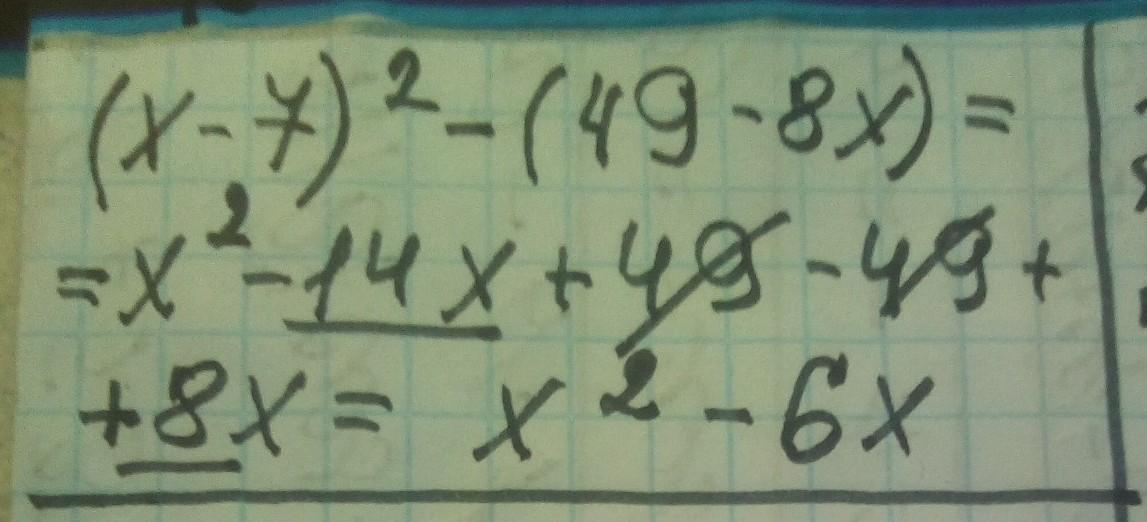 (х - 7)² - (49 - 8х) = (х² - 14х + 49) - (49 - 8х) =