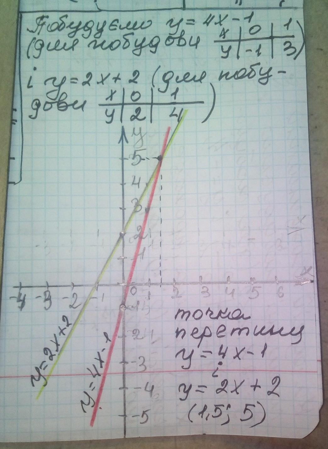 Побудуйте графіки функцій в одній системі координат та знайдіть координати точки їх перетину:
