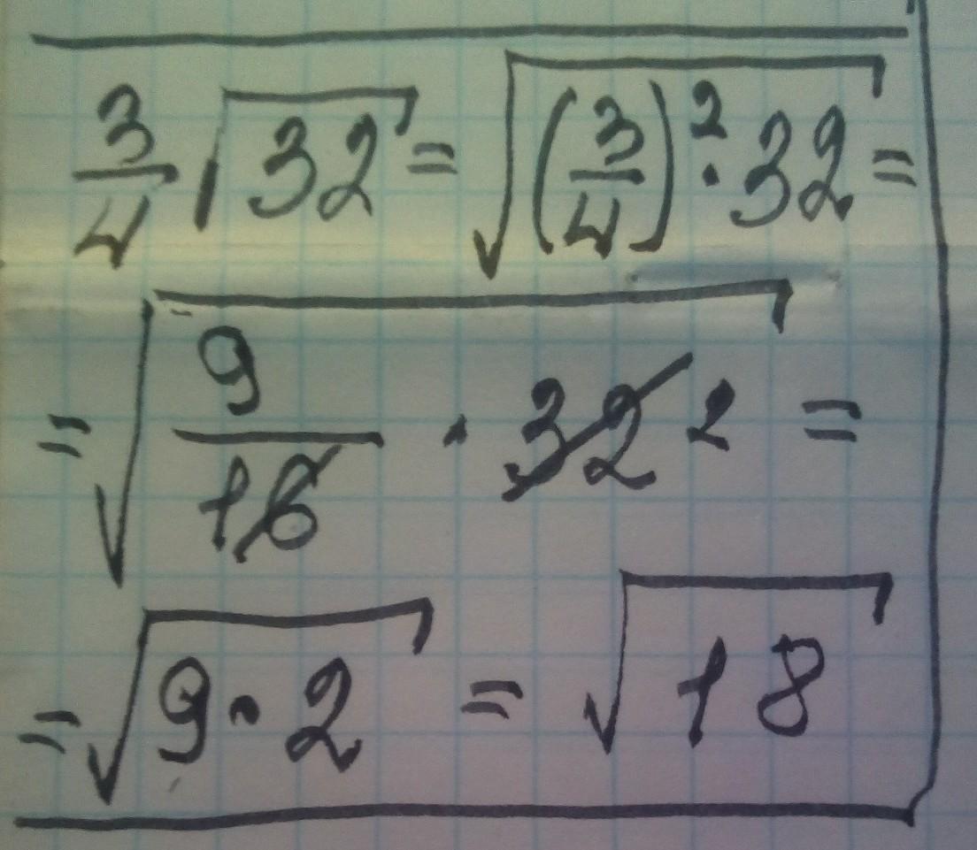 3/4√32 = √((3/4)² * 32) = √(9/16 * 32) = √18