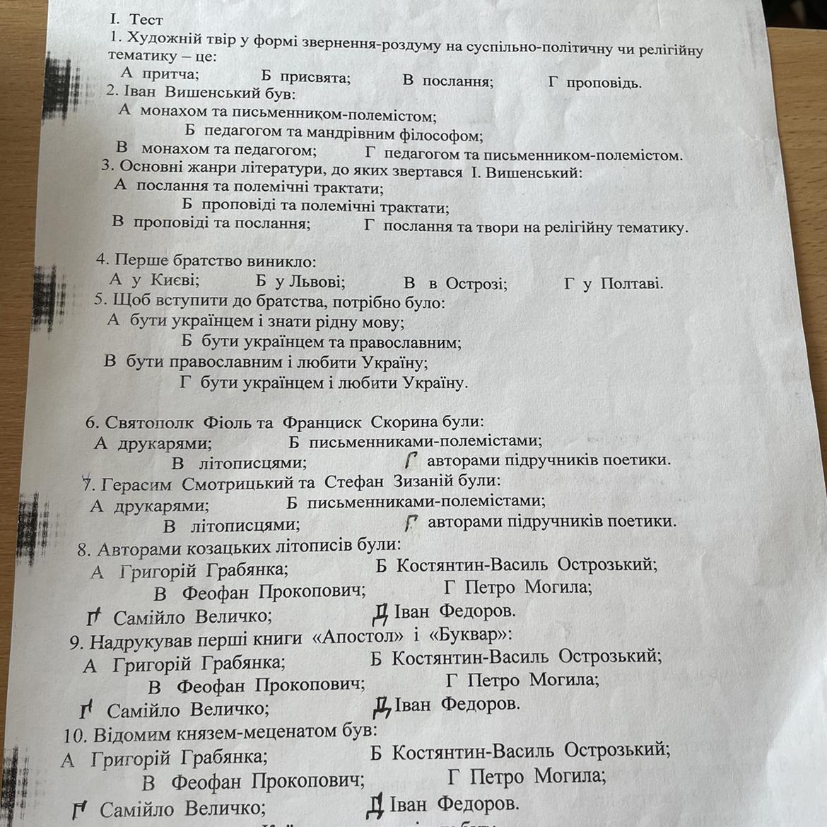 1. Б 2.В 3.Г 4.Г 5.Б 6.А 7.Б 8.Б 9.А 10.В